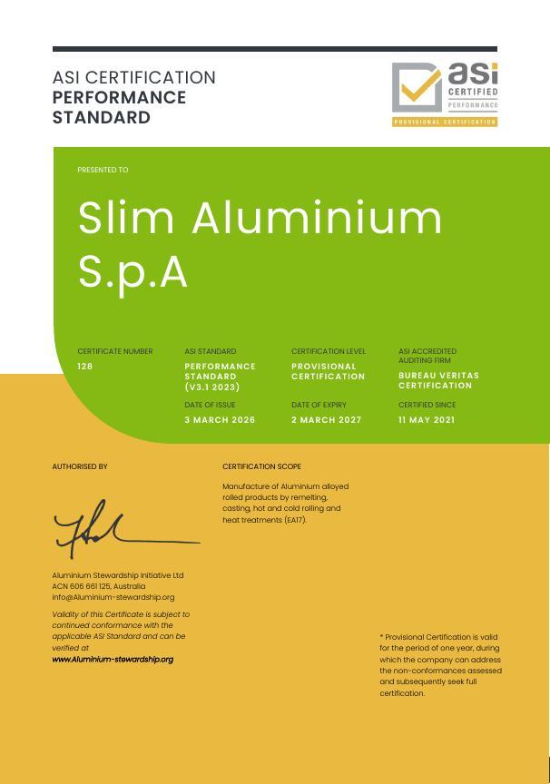 The objectives and strategic plan of “Aluminium Stewardship Initiative” perfectly fits with our mission and values. Therefore we are glad to join this association with the aim to receive support and offer our contribution as we believe that as part of a global group we can be stronger in spreading the sustainability of aluminum in all its uses and applications along its whole lifecycle.