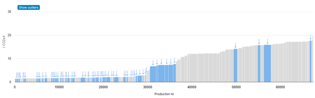In general, as can be seen in Figure 3, ASI Entities represent lower emitting smelters, in part due to the threshold cut off of criterion 5.2 excluding new coal-fired production.
