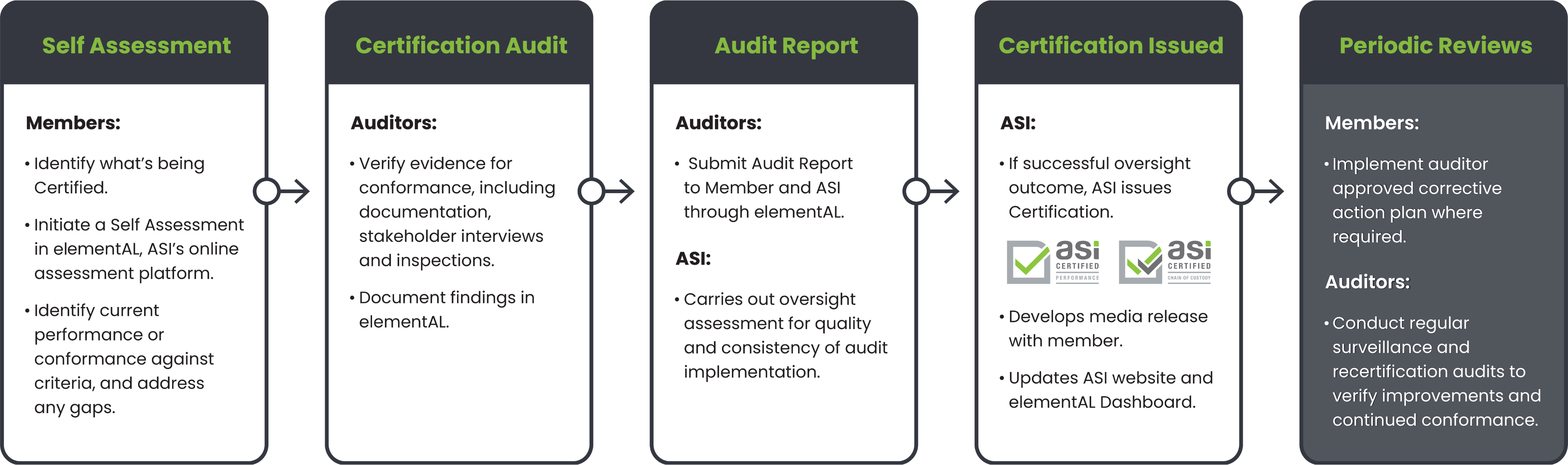 The path to certification consists of four main steps – and the ASI team is available to guide members through the process.